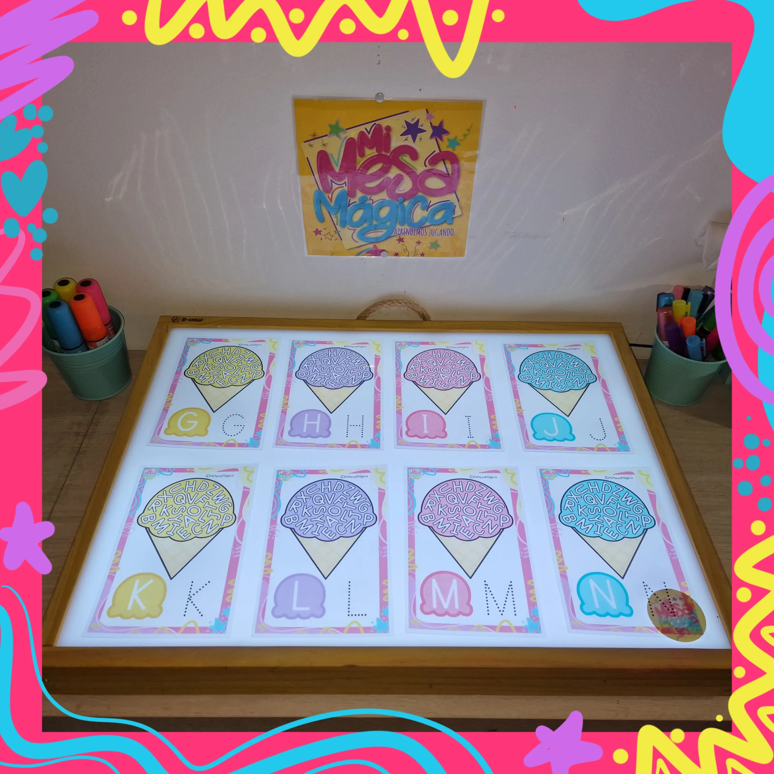 Busca la letra HELADO para mesa de luz