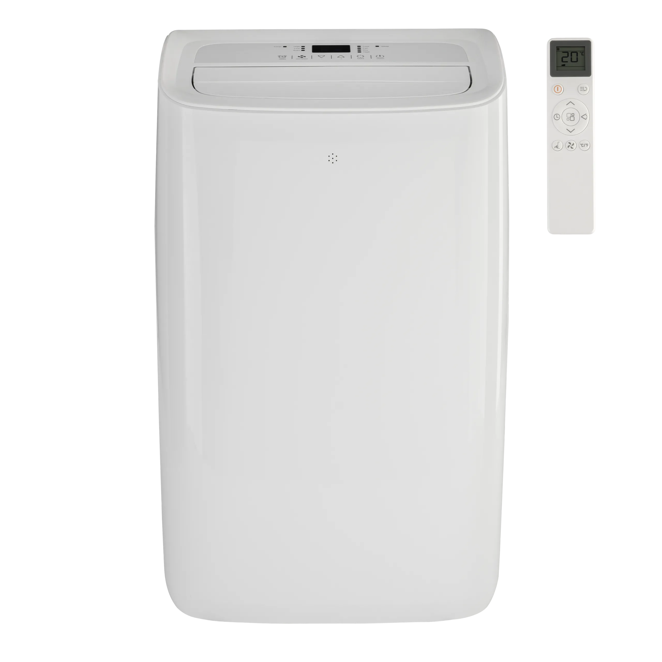 Aire acondicionado portátil Equation Cool. Enfría o calienta un salón, dormitorio u oficina de hasta 17 m² con nuestro aire acondicionado Cool & Heat 9K 2. La auténtica solución 4 en 1 para enfriar, calentar, ventilar o deshumidificar durante todo el año. Selecciona entre las 2 velocidades del ventilador según tus necesidades. Obtenga tranquilidad configurando el temporizador hasta 24 horas antes del apagado automático. No es necesario levantarse para configurarlo en ningún momento, gracias a su mando a distancia (2 pilas AAA no incluidas). I.Muévelo fácilmente de una habitación a otra gracias a su asa de transporte y sus ruedas. Tenga la seguridad de que es un producto confiable y sostenible con su garantía de 5 años.