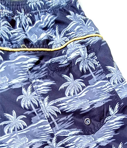 Esta bermuda con fondo en tono gris oscuro incorpora en su diseño un estampado de palmeras en color gris claro además de una costura lateral en color amarillo, y en la parte trasera en horizontal. Lo que le da un toque más de sport para el día a día.