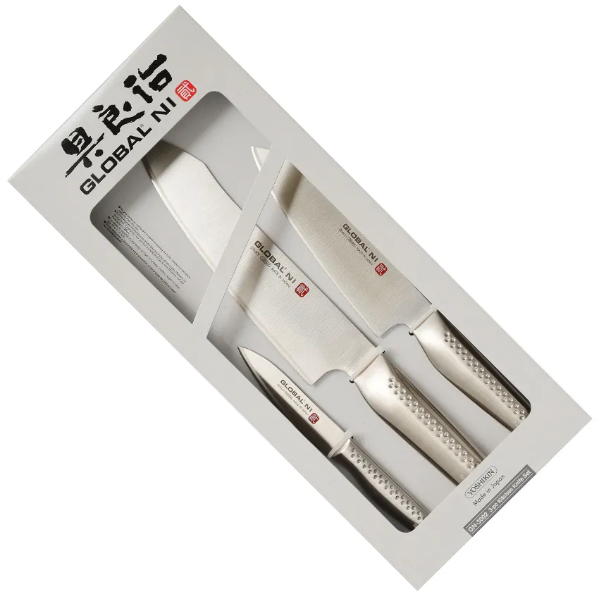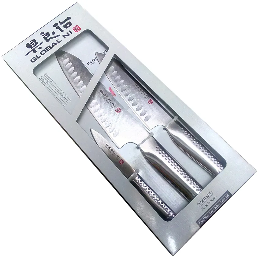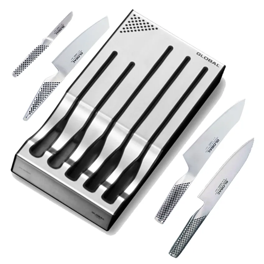 Juego compuesto por 4 cuchillos Global con soporte bandeja, compuesto por: