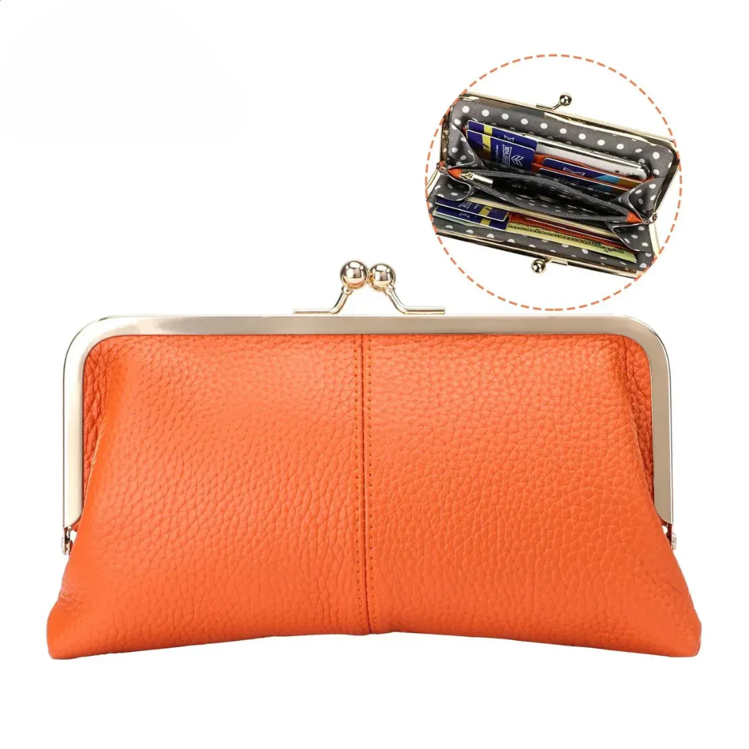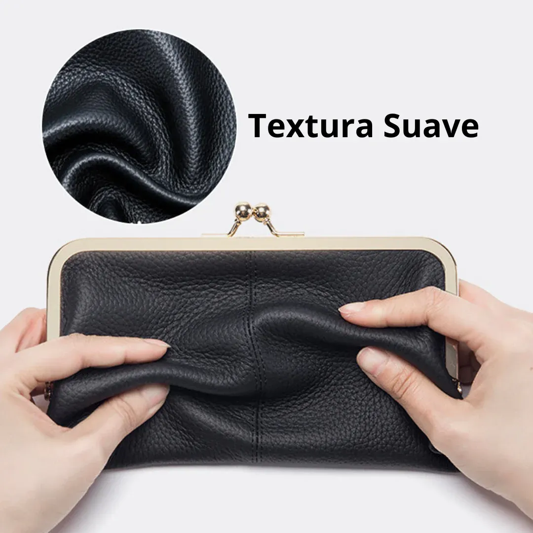 Fabricado en cuero genuino, este bolso de mano destaca por su diseño atemporal y el encantador cierre de beso que aporta un aire sofisticado.
