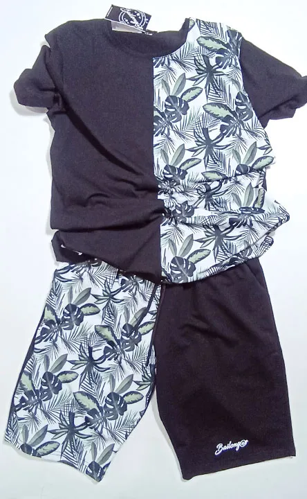 Esta camiseta con fondo en tono negro cuyo lado derecho es negro total pero el lado izquierdo lleva un estampado de hojas en tonos verde. La parte de atrás es negra totalmente. Tejido elástico y cómodo para asegurar la comodidad en tus movimientos en tu día a día o en tus clases y sociales de baile.
