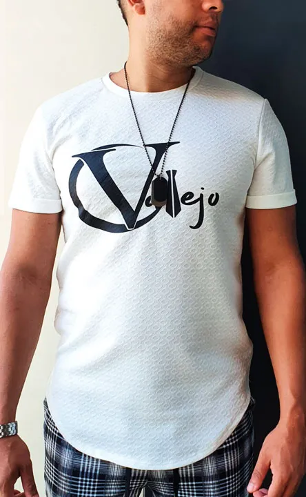 En el centro de la camiseta podéis apreciar el logo de nuestra línea de vestir: Vallejo, en vinilo.