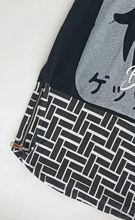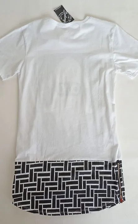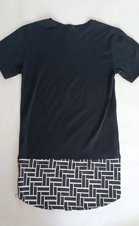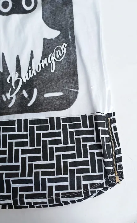Esta camiseta está diseñado en tono blanco o negro, con la parte inferior es un estampado geométrico en blanco y negro. Se caracteriza por el diseño y las cremalleras pequeña que lleva en los laterales del bajo de la camiseta, a ambos lados. Tejido elástico y cómodo para asegurar la comodidad en tus movimientos en tu día a día o en tus clases y sociales de baile.