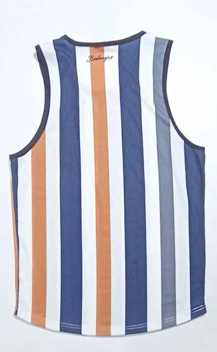 Esta camiseta está diseñada con con unas rayas verticales contrastadas en varios tonos, una de ellas alterna los colores blanco y mostaza, mientras que la otra alterna los tonos azules marino, mostaza y el blanco. Tejido elástico y cómodo para asegurar la comodidad en tus movimientos en tu día a día o en tus clases y sociales de baile.
