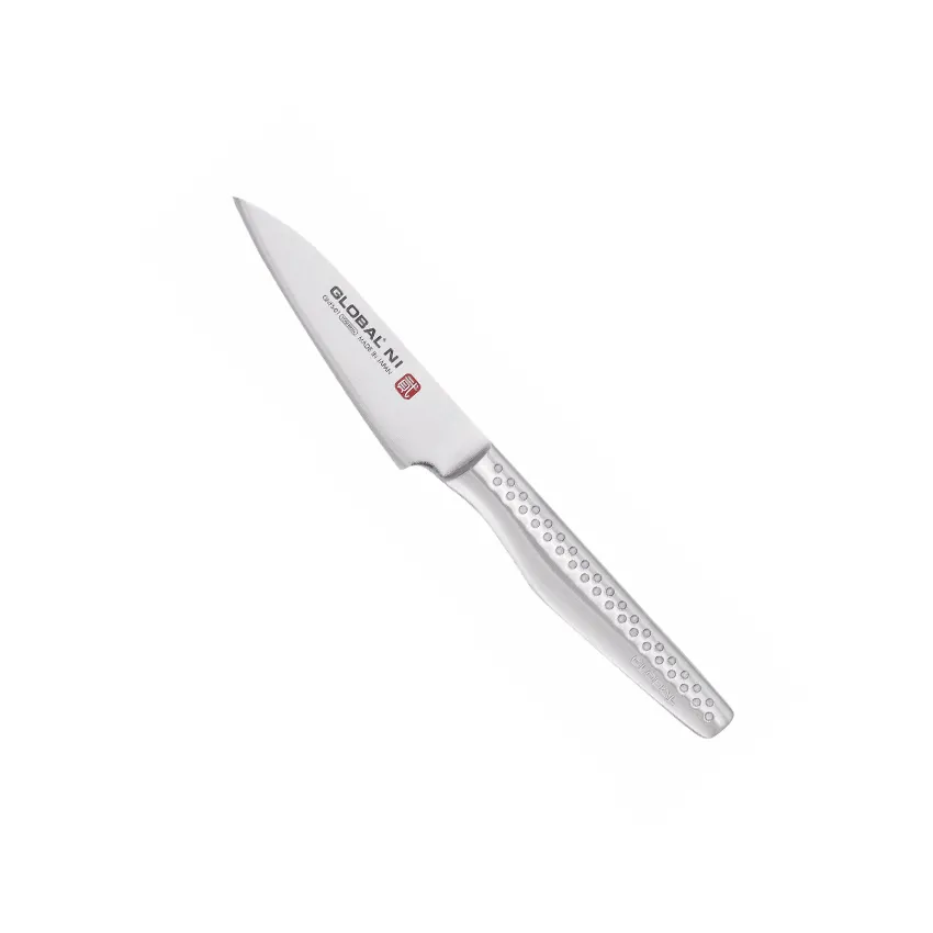 El SAI-01 es el cuchillo líder de la gama Global SAI. Con sus 19 cm de longitud, este cuchillo de chef puede realizar cualquier tarea en la cocina y es el cuchillo todoterreno perfecto, ideal para picar, cortar en dados, trocear y rebanar. El diseño del mango incorpora un apoyo ergonómico para el pulgar que facilita el agarre para una técnica de corte óptima. El cuchillo de chef de 19 cm tiene un buen tamaño y es equivalente en la gama SAI al G-2, el cuchillo más vendido de la gama clásica. Disfrute cortando verduras como si fueran mantequilla con este cuchillo de especificaciones excepcionales. El cuchillo de cocinero está disponible en dos tamaños adicionales. El SAI-06, un cuchillo de chef de 25 cm, es más adecuado para chefs profesionales, mientras que el SAI-M01, de 14 cm, es la versión más pequeña.