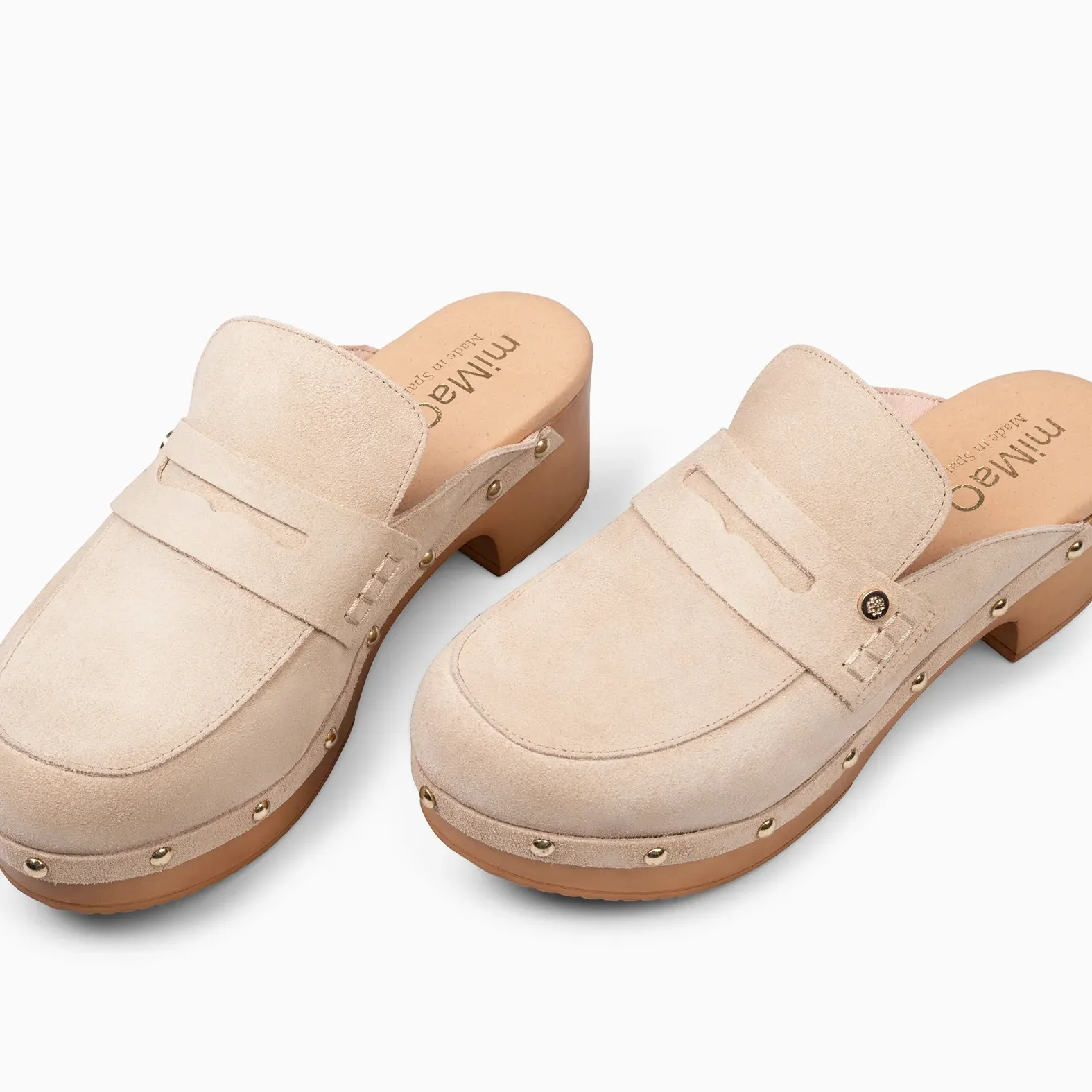 Las Zuecos con tacón Bajo y Plataforma GASSIN son la elección ideal para lucir tacón esta primavera-verano. Están fabricadas en piel de serraje, con un tacón de 5.5 cm de altura y una plataforma de 2 cm, brindando estilo y comodidad en cada paso.