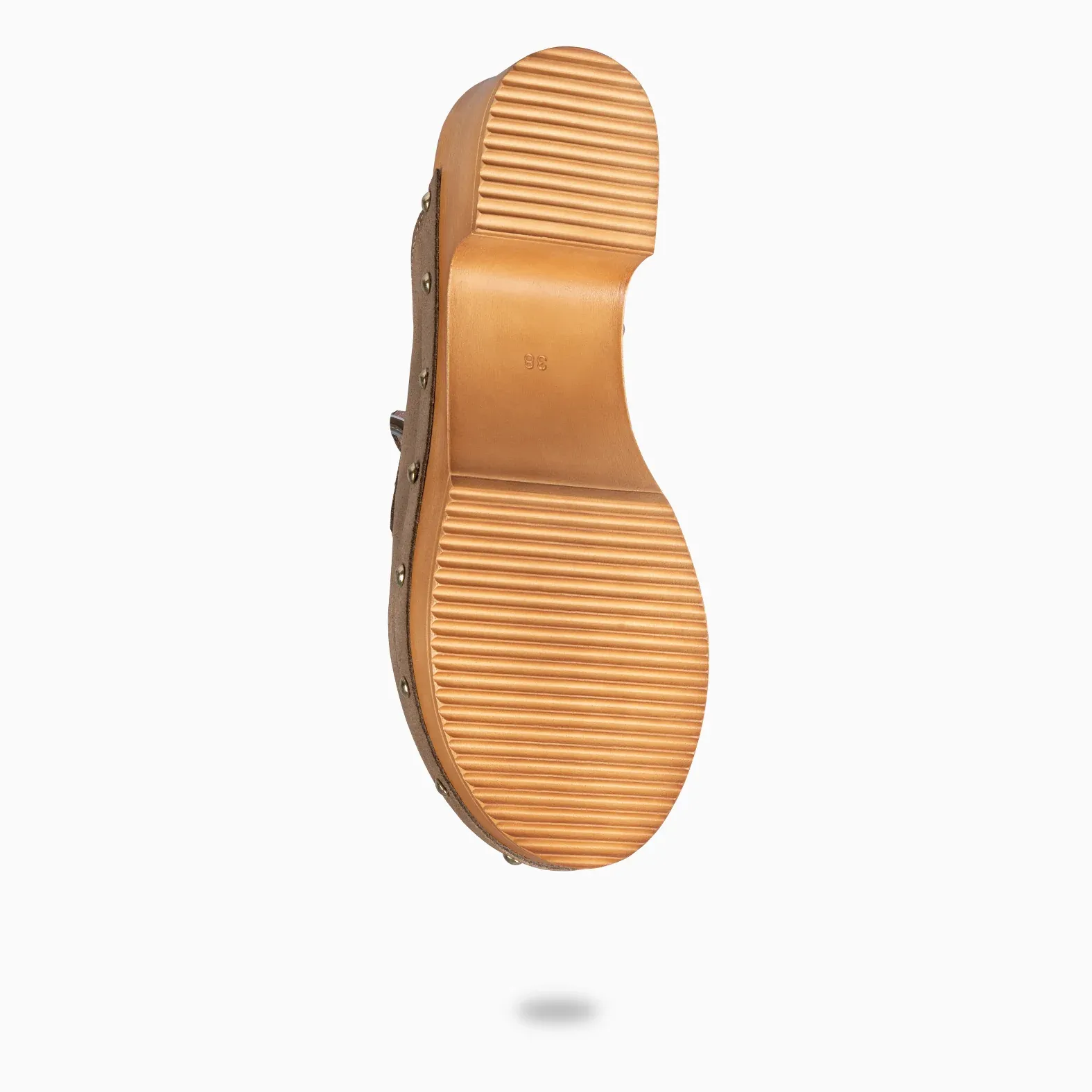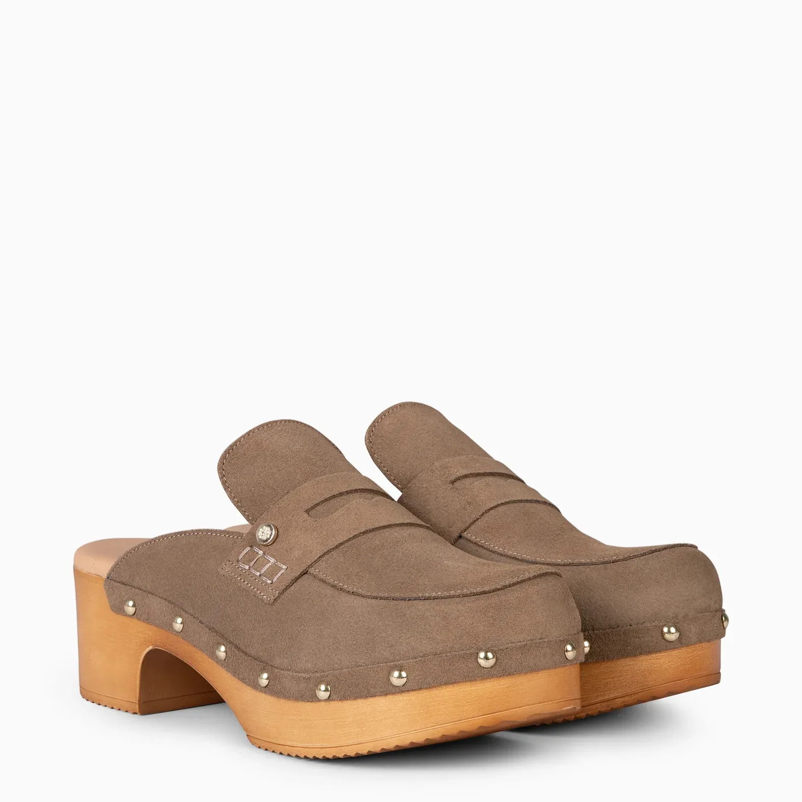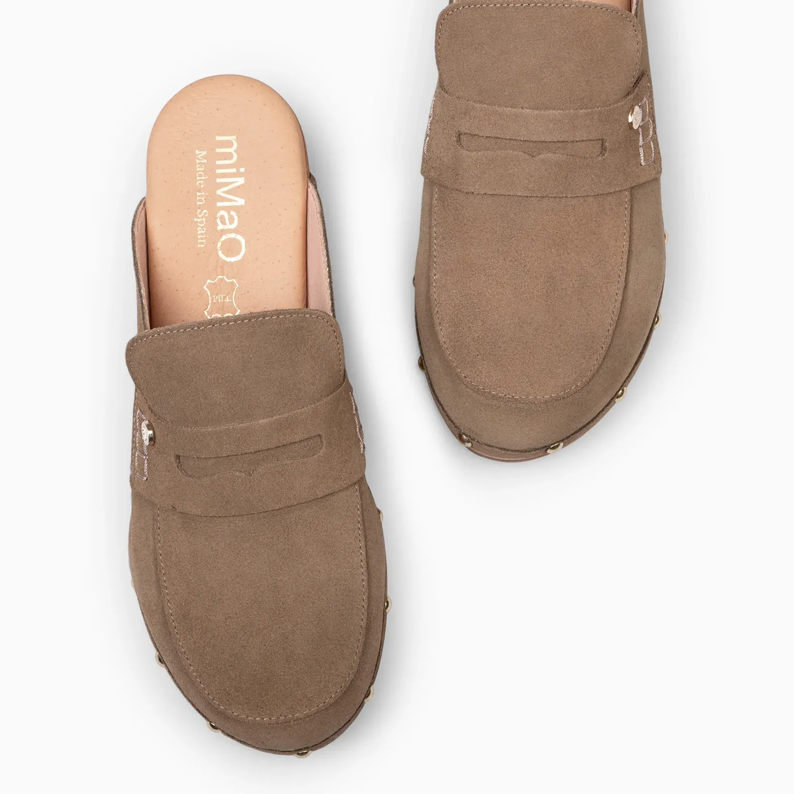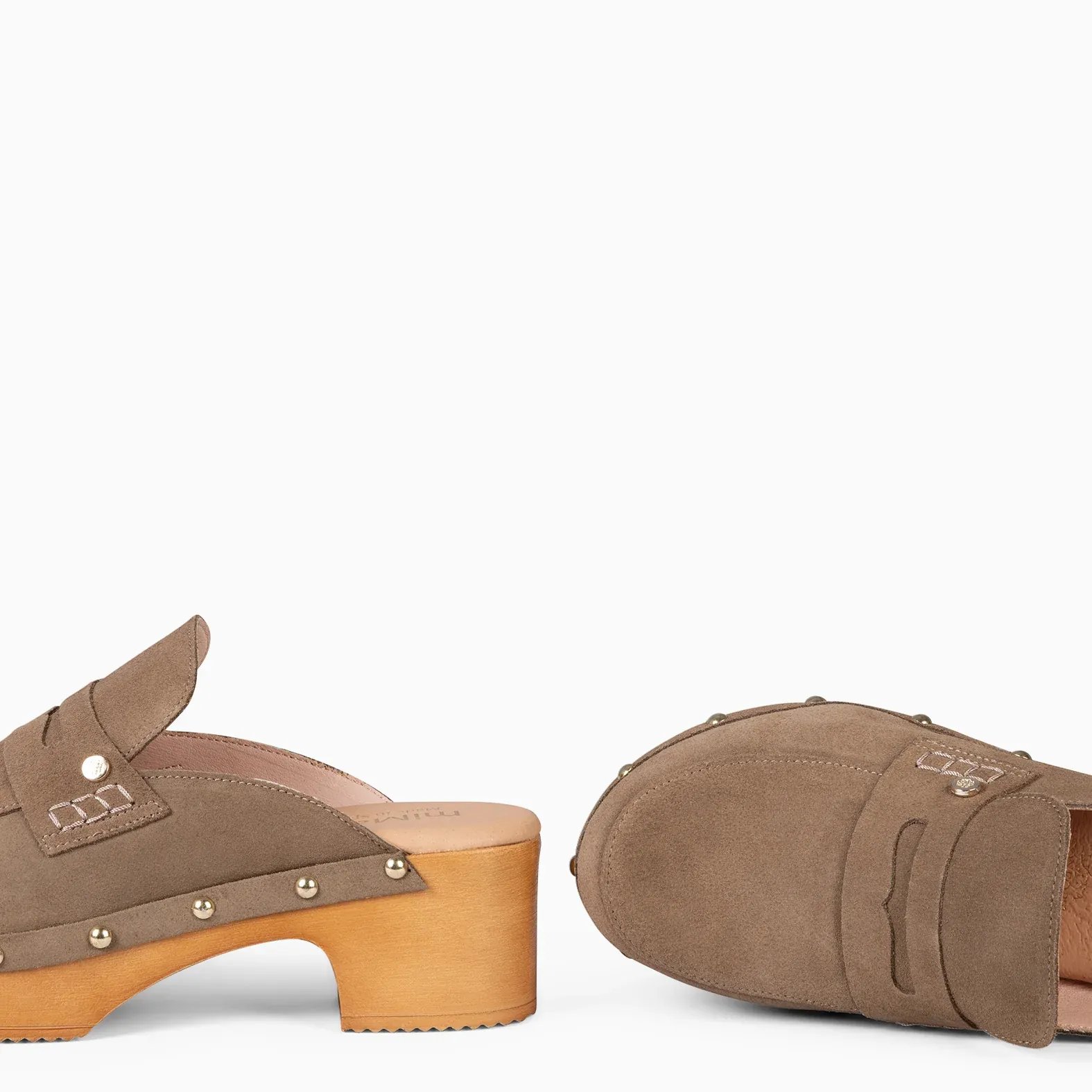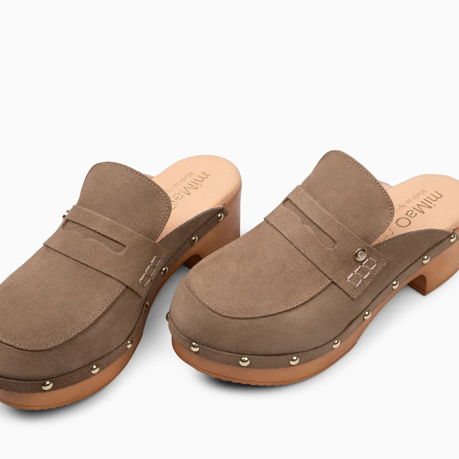 Las Zuecos con tacón Bajo y Plataforma GASSIN son la elección ideal para lucir tacón esta primavera-verano. Están fabricadas en piel de serraje, con un tacón de 5.5 cm de altura y una plataforma de 2 cm, brindando estilo y comodidad en cada paso.