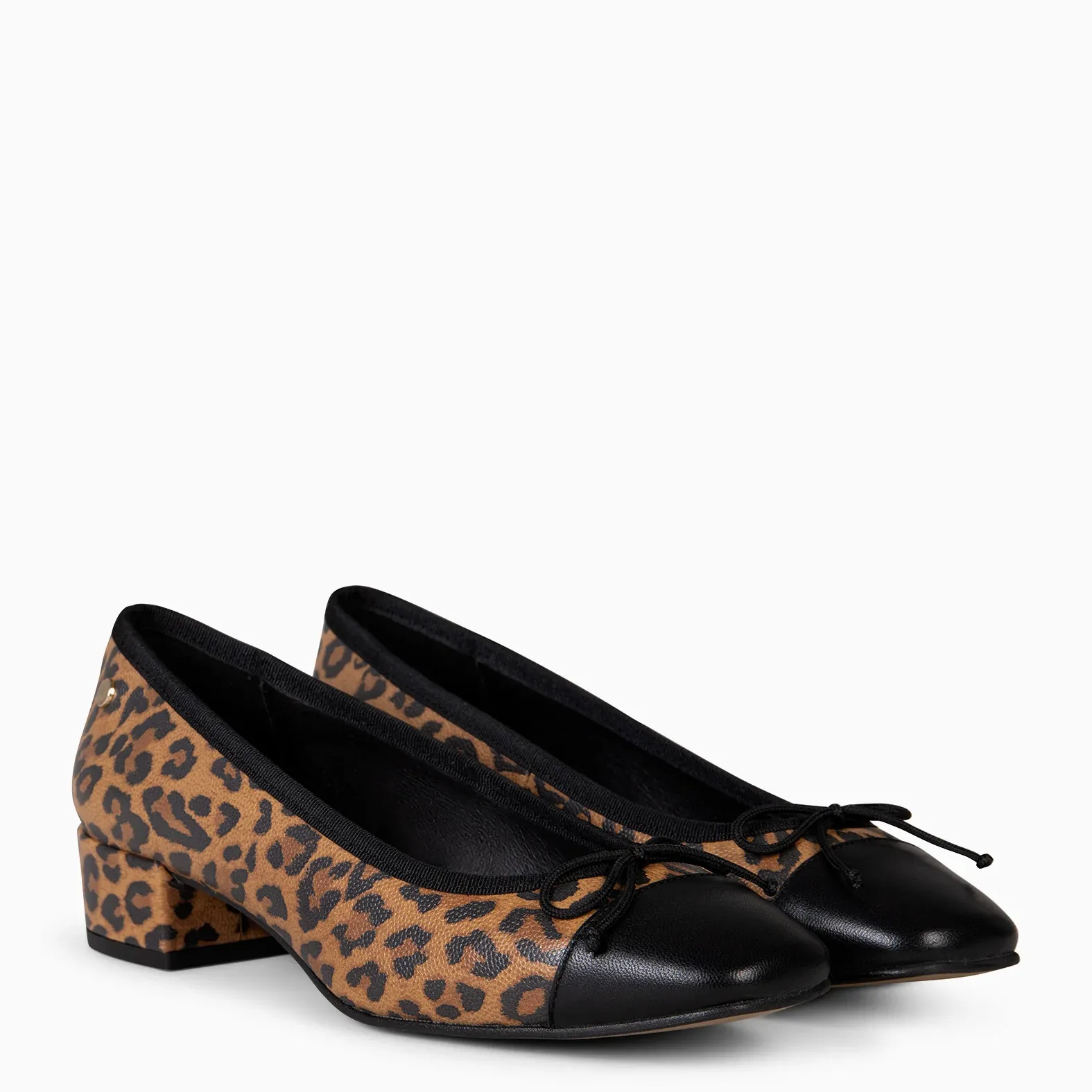 GLAMOUR – Bailarinas con tacón y puntera de napa LEOPARDO