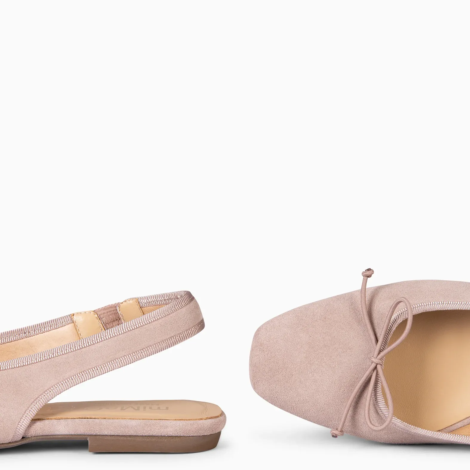 Nuestra nueva bailarina destalonada está fabricada en piel de serraje, cuenta con una altura de 1 cm. Cuenta con un espástico en la parte de atrás del pie para mejor puesta.