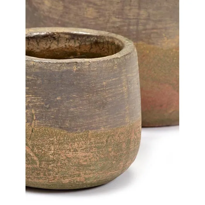 Diseñador: Serax. Material: cerámica. Color: gris.marrón. Diámetro: 21cm. Alto: 16cm. Largo: 21cm. Ancho: 21cm. Las macetas están tratadas con una fina capa impermeable en el interior, pero esto no garantiza una estanqueidad del 100%. Por lo tanto, recomendamos no plantar directamente en la maceta, sino colocar la planta en una maceta de plástico + platillo o usar una bolsa de plástico en el interior. Se pueden formar grietas si la planta se planta directamente en la maceta.