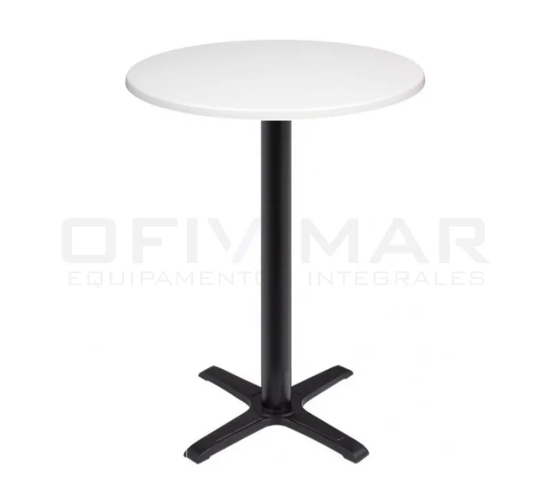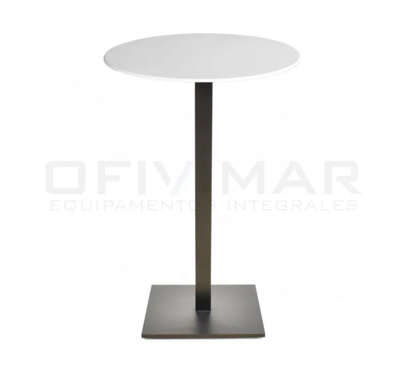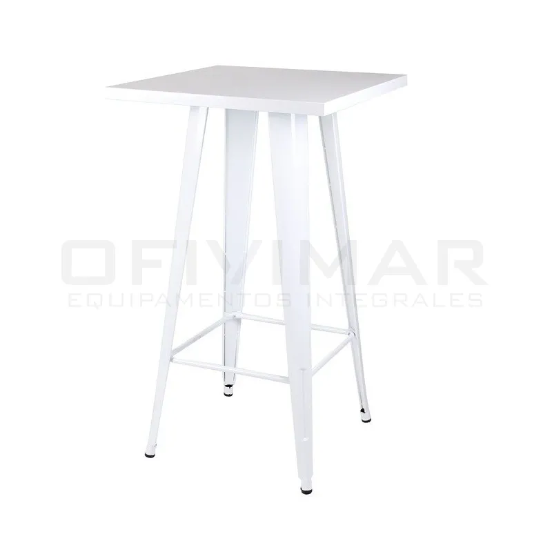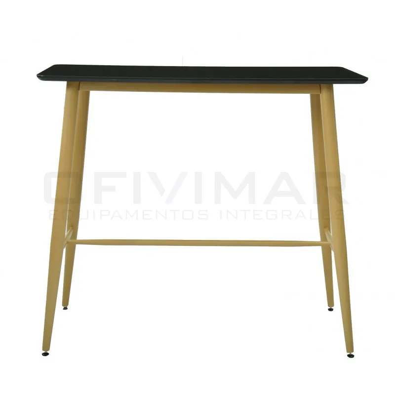 Mesa de diseño alta,armazón de metal con acabado imitación madera.Tapa de madera lacada en blanco o en negro.Medidas de 120x60x106 (largo x ancho x altura)
