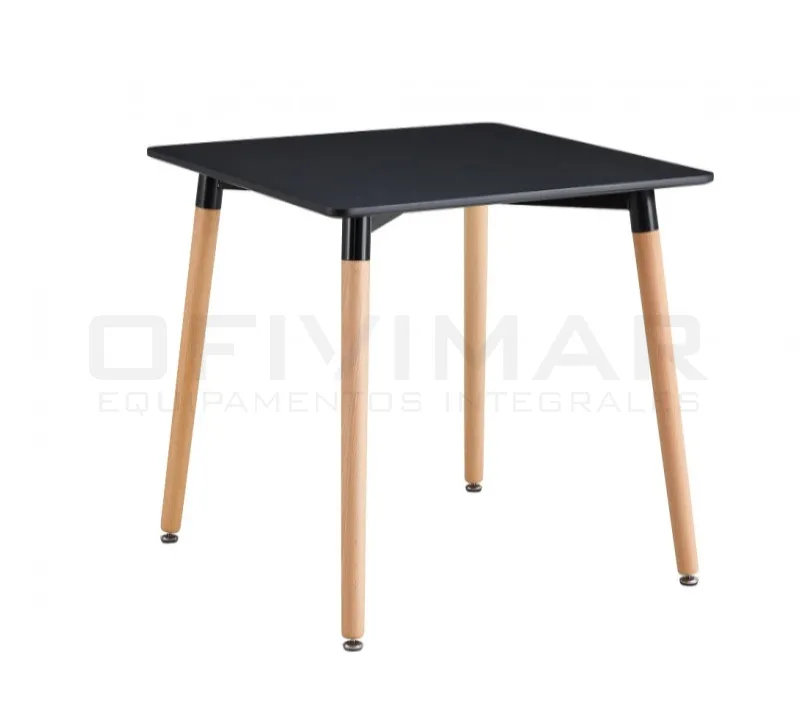 Mesa cuadrada combinada, compuesta por patas de madera y tapa de madera lacada en negro. Acabados a elegir.