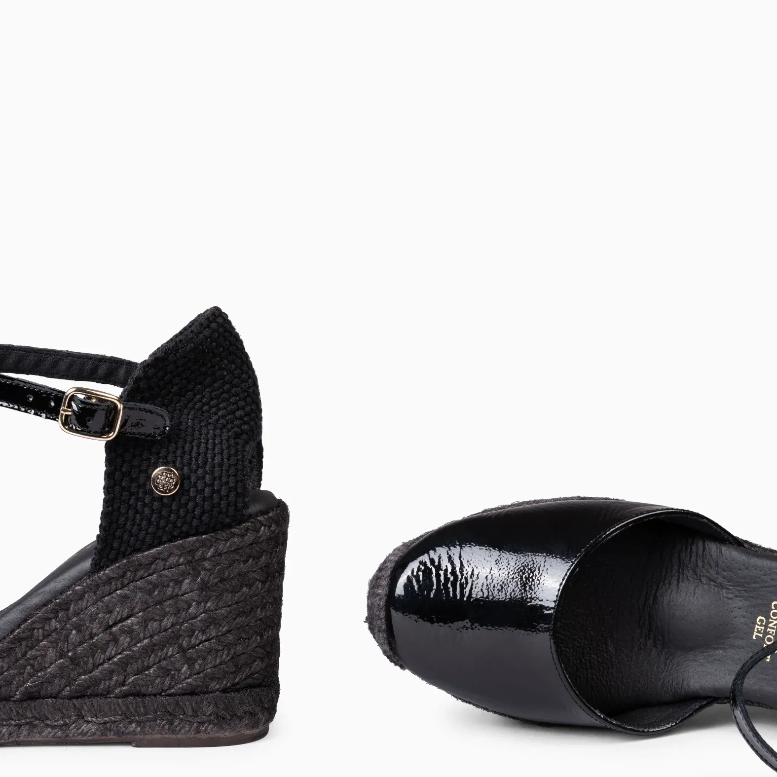Estas cuñas de esparto tienen una altura de 8,5 cm, pero gracias a su plataforma y cuña son muy cómodas. Además, cuentan con una Plantilla de Gota de Gel diseñada para amortiguar el impacto de la pisada sobre la planta del pie y las articulaciones. Su pulsera permite la sandalia al tobillo y evita el chancleteo.