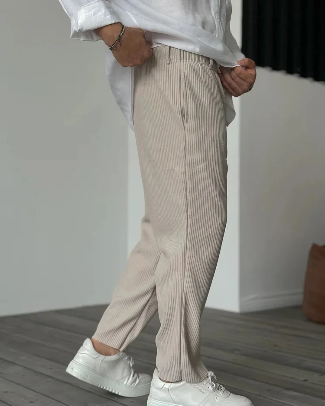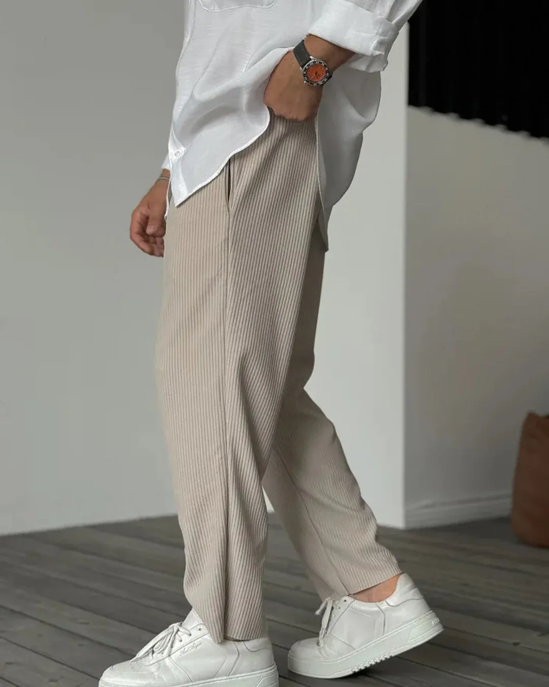 Estos pantalones fueron creados para el hombre moderno que busca sofisticación con total comodidad. Confeccionados en un tejido suave y de alta calidad, son perfectos tanto para el trabajo como para la ropa informal.