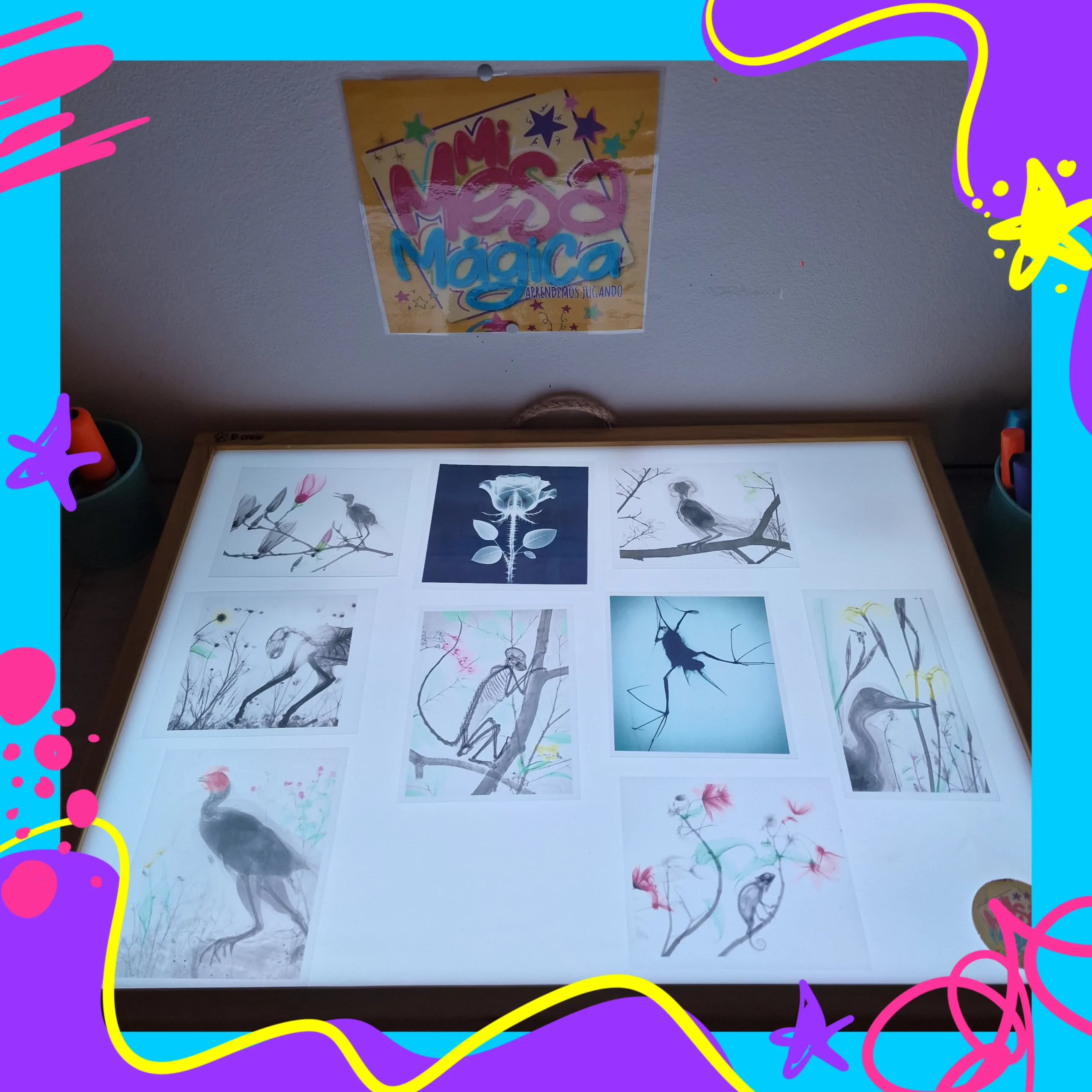 20 radiografías con temática de primavera en acetato plastificado de gran calidad. 18 en tamaño A5 y 2 en tamaño A4 con las que poder explorar, jugar y aprender en la mesa de luz.