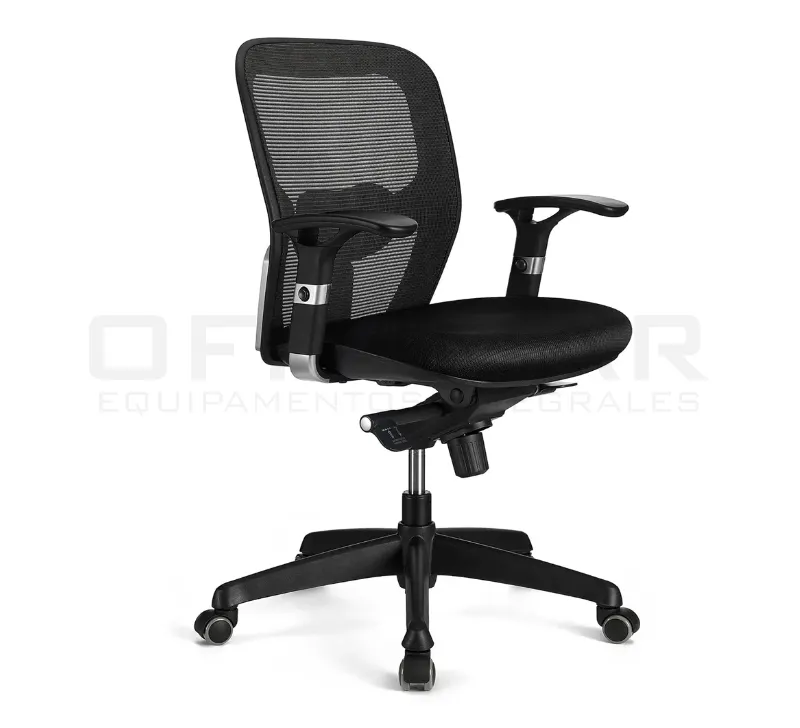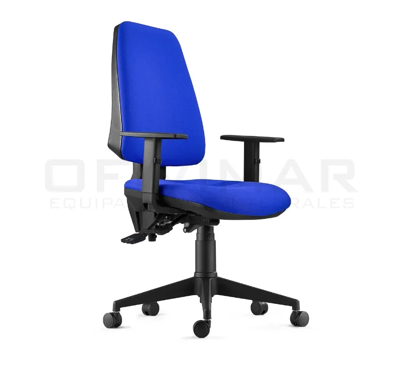 Silla gaming, tapizada en malla y reposacabezas tapizado en tela flex. Cojín anexo tapizado a juego, asiento ergonómico tapizado en tela flex y mecanismo syncron de 4 posiciones, tensor de control de presión. Brazos regulables en altura con reposabrazos de goma. Base de nylon en negro y azul con ruedas de 60 mm.
