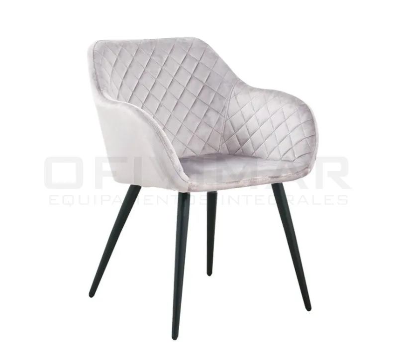 Sillón, compuesto por armadura metálica con acabado pintura negra y asiento integrado con respaldo, tapizado en tejido aterciopelado. Diferentes colores disponibles.(Se venden en múltiplos de 2 unidades).