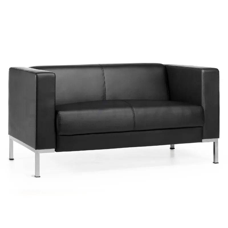 Sofá en ecopiel para salas de espera. Diseño elegante,asiento cómodo de gran calidad. Chasis interno fabricado en aglomerado con refuerzo de listones y escuadras de madera. Soporte para asiento de varilla metálica de gran resistencia. Estructura de 4 apoyos en tubo de acero cromado de 15 x 15 mm. Asiento y respaldo con forma anatómica,recubiertos de goma de alta densidad. Tapizado integral en ecopiel. Soportes de PVC para el apoyo en suelo. Disponible en tres versiones(plazas).