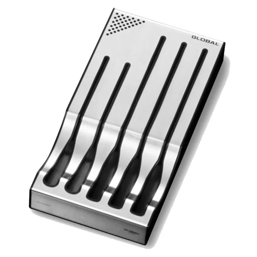 Soporte Global GKB-52/CB – Soporte de cuchillos con forma de barco, negro, 10 ranuras