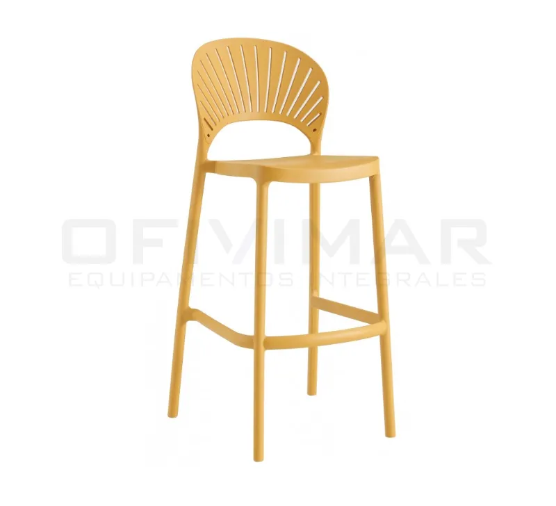 Taburete con diseño en abanico apilable, estructura de polipropileno acabado en color. Diferentes colores disponibles.(Se venden en múltiplos de 4 unidades).Uso en interior y exterior.