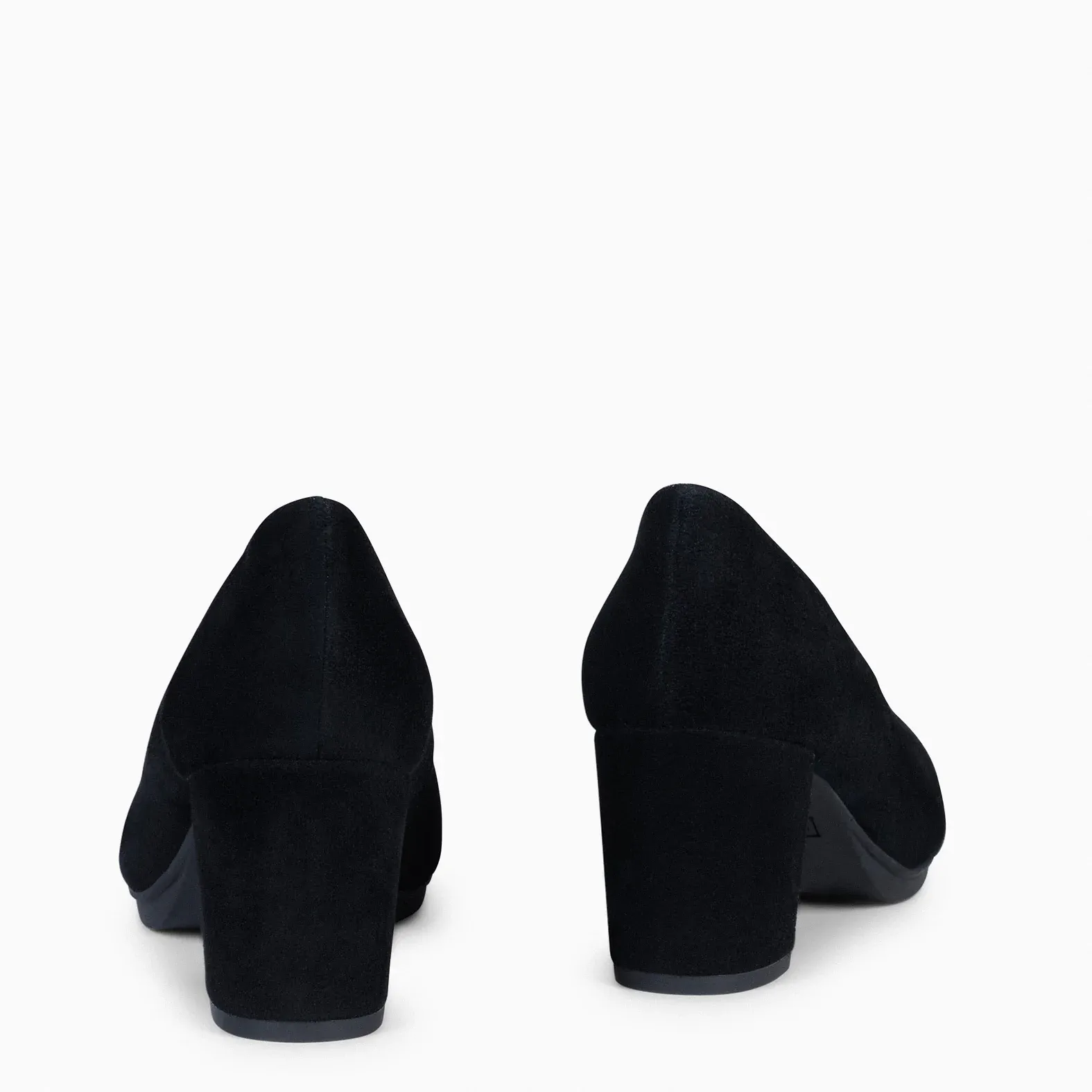 Zapatos de tacón medio fabricados en piel de ante de máxima calidad. Cuentan con un diseño elegante y clásico, ideal para utilizar en bodas, bautizos, comuniones y en el resto de los eventos.