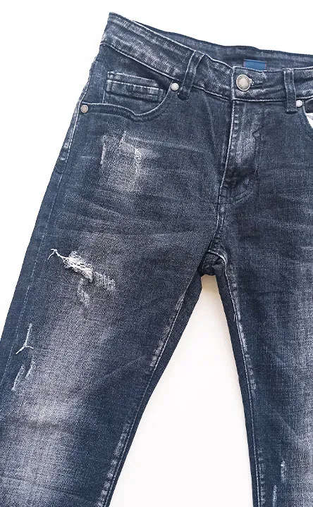 Nuestro Vaquero Negro Desgastado es genial para que te veas diferente, único y con un toque clásico a la vez. Nuestros modelos buscan siempre el diferenciarse de los diseños habituales. Un pantalón de tejido vaquero, en color negro. Botón y cremallera centrados. Compuesto por un conjunto de 5 bolsillos, 3 delanteros y dos traseros. Este modelo se caracteriza además por los detalles de tejido desgastado a lo largo de las perneras.