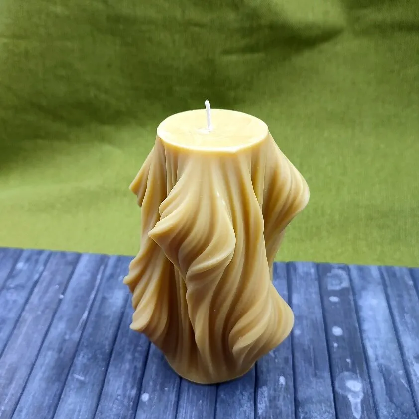 Cada vela esta realizada, una a una, con cera de abeja y cera vegetal de soja mediante un procedimiento artesanal.