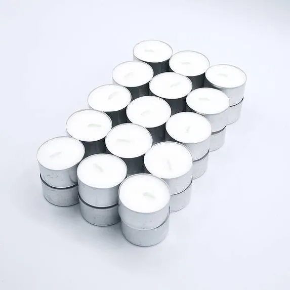 Pequeña : 8 cm x 8 cm. Vela interior de 8 horas aproximadamente de duración.