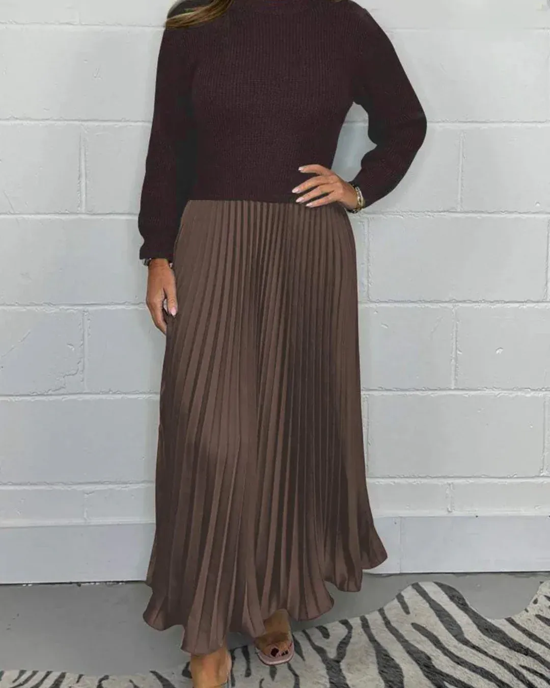 Este vestido de manga larga combina un estilo clásico con un toque moderno, ideal para quienes buscan una prenda versátil y elegante. Su diseño con falda plisada añade movimiento y fluidez a cada paso, resaltando tu figura de manera delicada.
