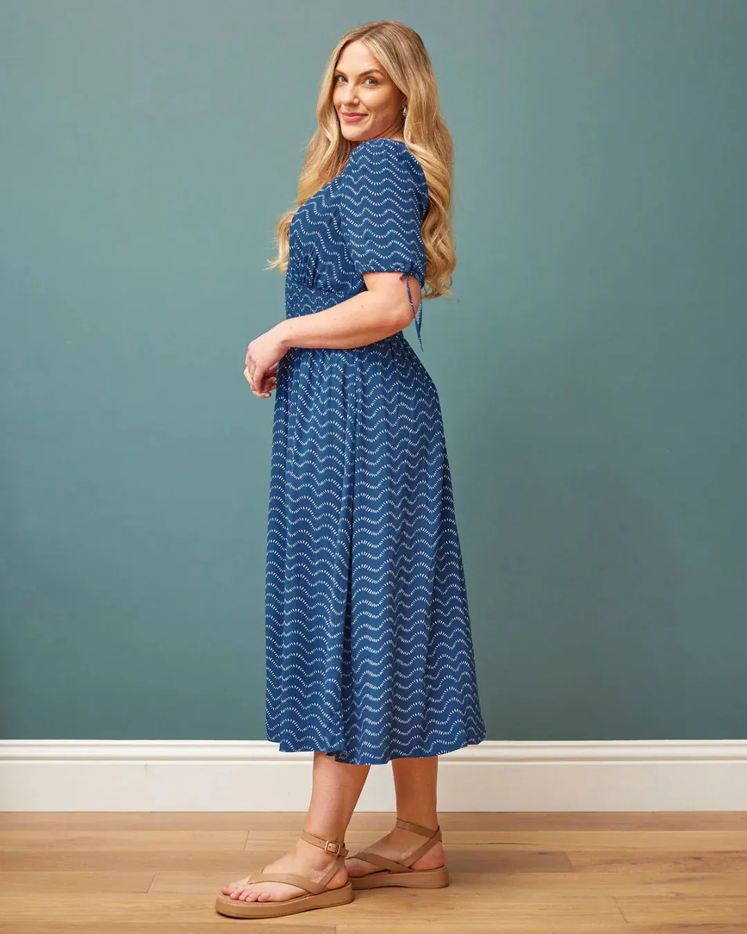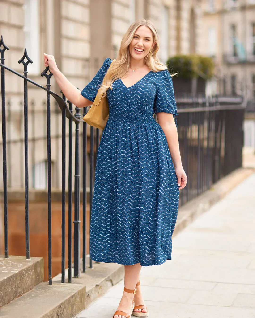 Este vestido combina un diseño clásico y favorecedor con una confección sostenible. Ideal para lucir sofisticada sin comprometer el cuidado del planeta.