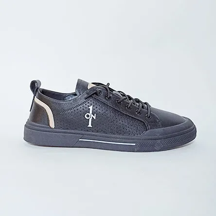 Zapatilla Negra Casual, es una zapatilla deportiva de nuestra marca On1. Fabricada en su exterior en material sintético muy duradero. Un diseño sencillo y moderno perfectamente con cualquier vestimenta. Detalle en la parte posterior con una pequeña línea en tono dorada a juego con nuestro logo que va incorporado en la lengüeta y parte lateral. El cierre es con cordón plano.