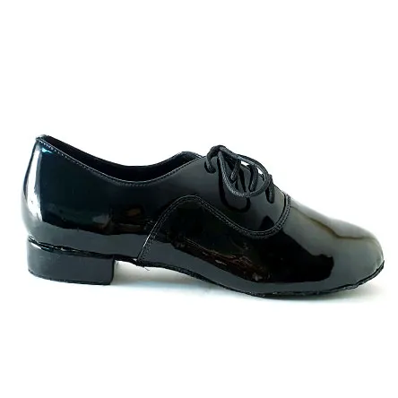 Zapato Rubio de nuestra marca On1 de color negro. Se trata de un zapato de baile cuya suela está fabricada con serraje. Se caracteriza por su gran ligereza para poder ejecutar el baile con la mayor comodidad posible. Además, está completamente cubierto con charol para darle una apariencia mucho más brillante.