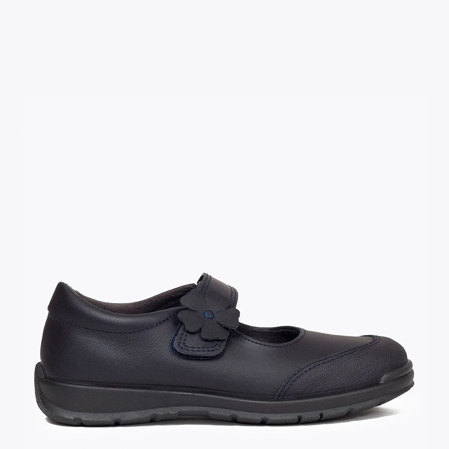 Zapatos Colegiales niña “Merceditas” con flor Azul Marino